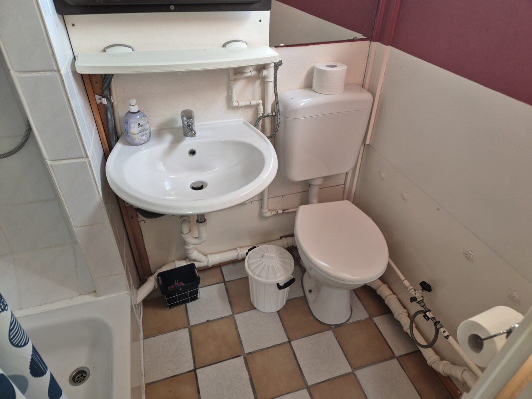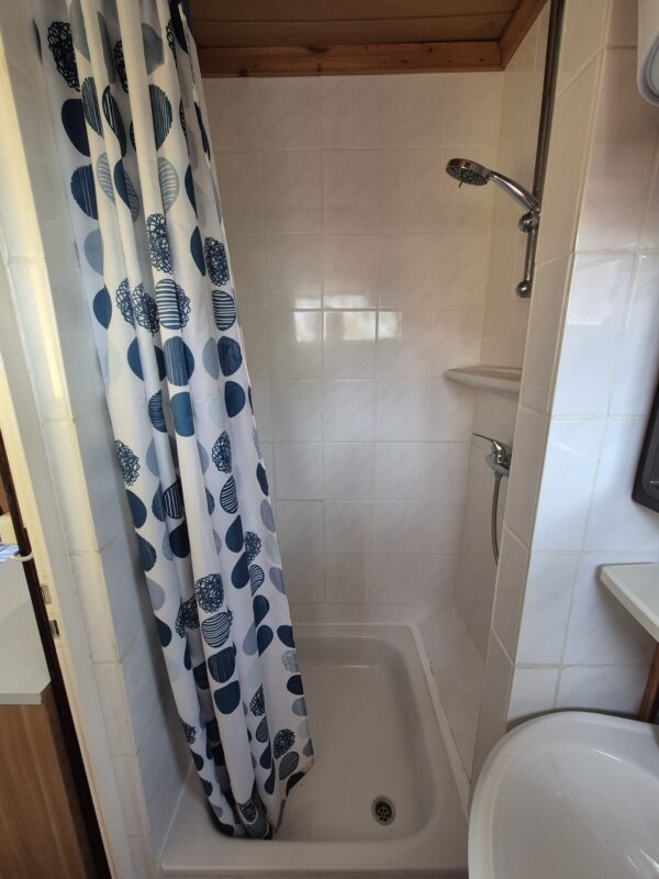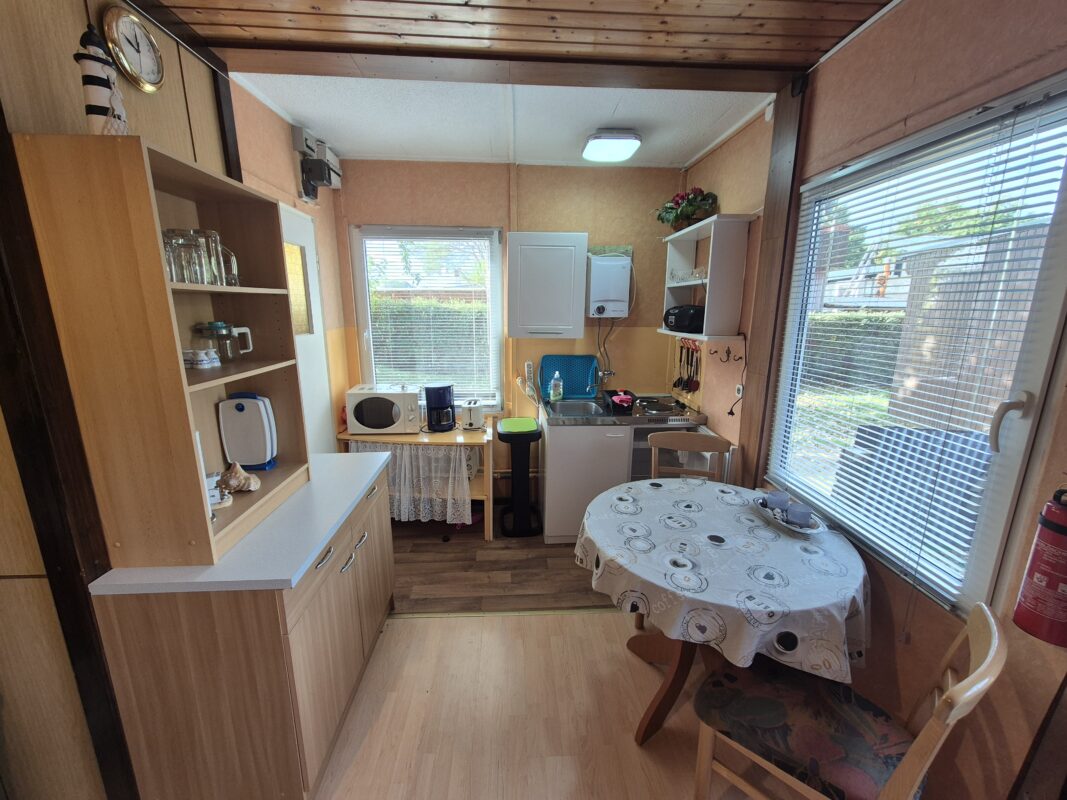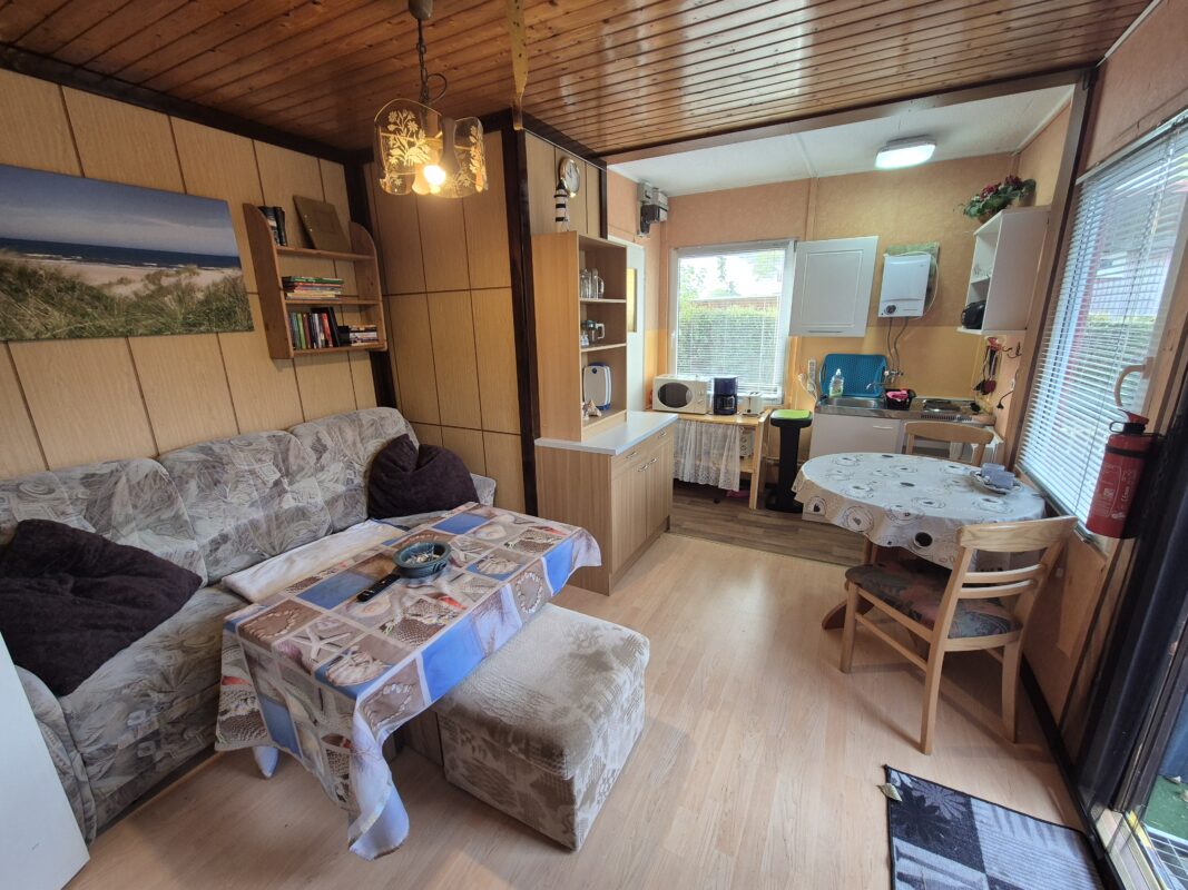 Auf einer Gesamtgröße von derzeit ca. 26 m² befinden sich ein großzügiger und gemütlicher Wohn- Essbereich, ein Schlafzimmer mit Doppelbett und Doppelstockbett sowie ein Badezimmer mit Dusche.