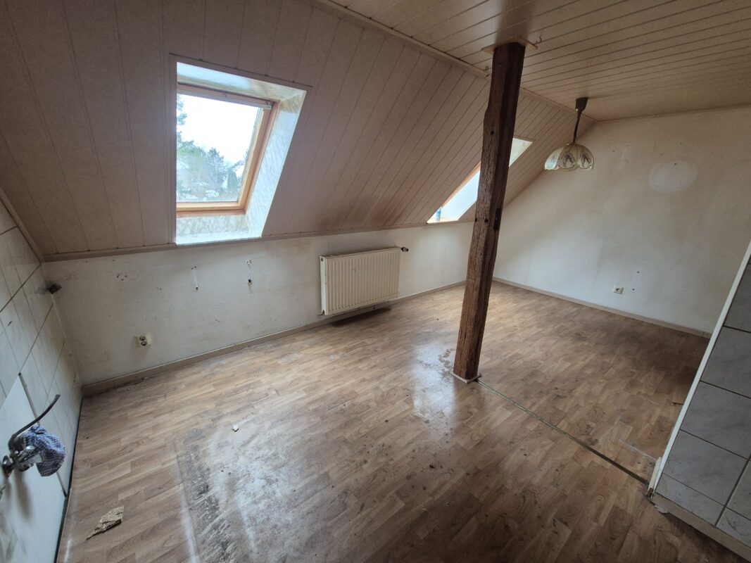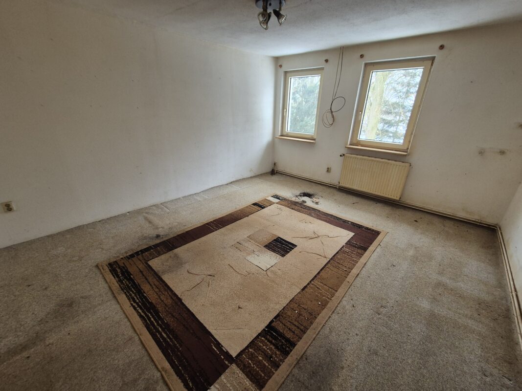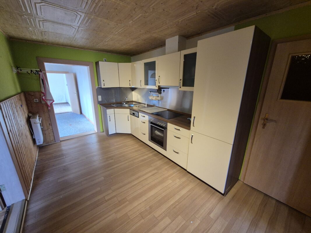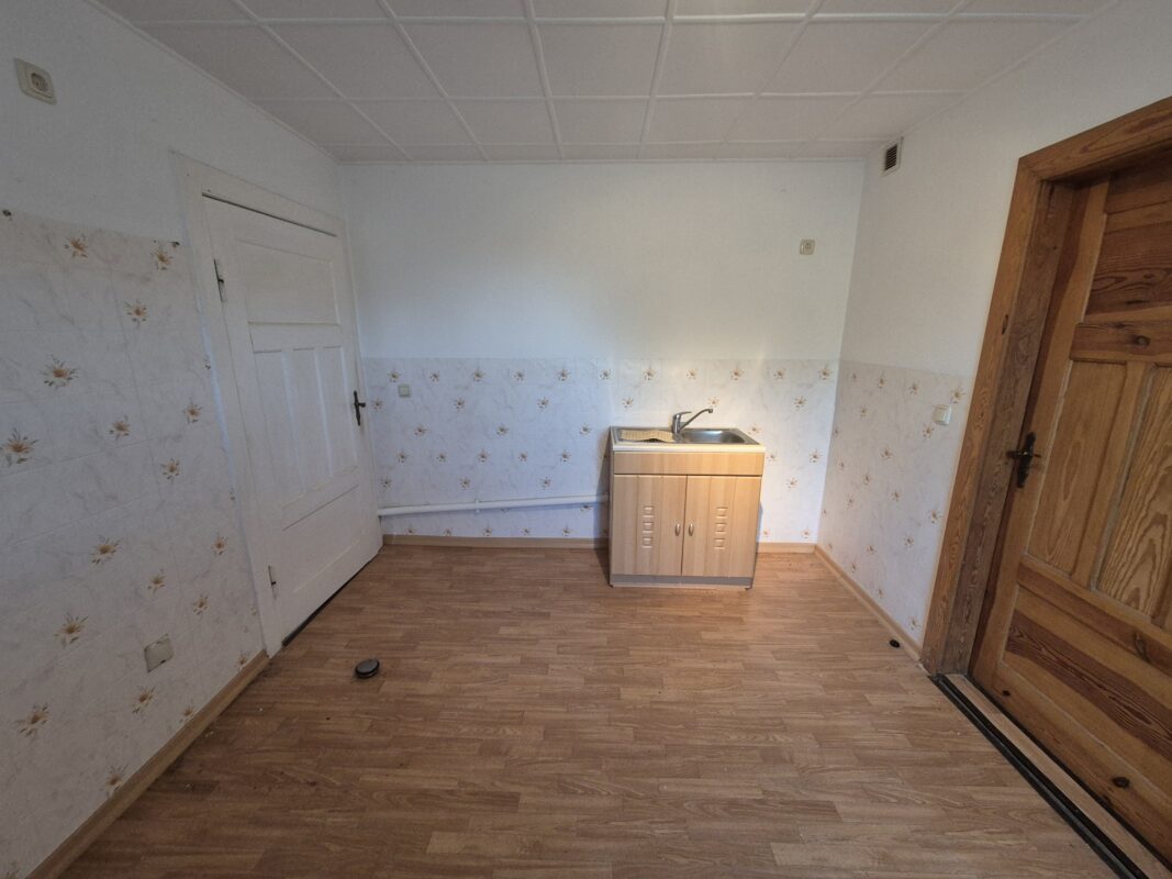 Die zweite Wohneinheit befindet sich in einem sanierungsbedürftigen Zustand und ist noch nicht fertiggestellt. Sie umfasst derzeit zwei Zimmer, eine Küche, ein Badezimmer sowie einen kleinen Kellerbereich.