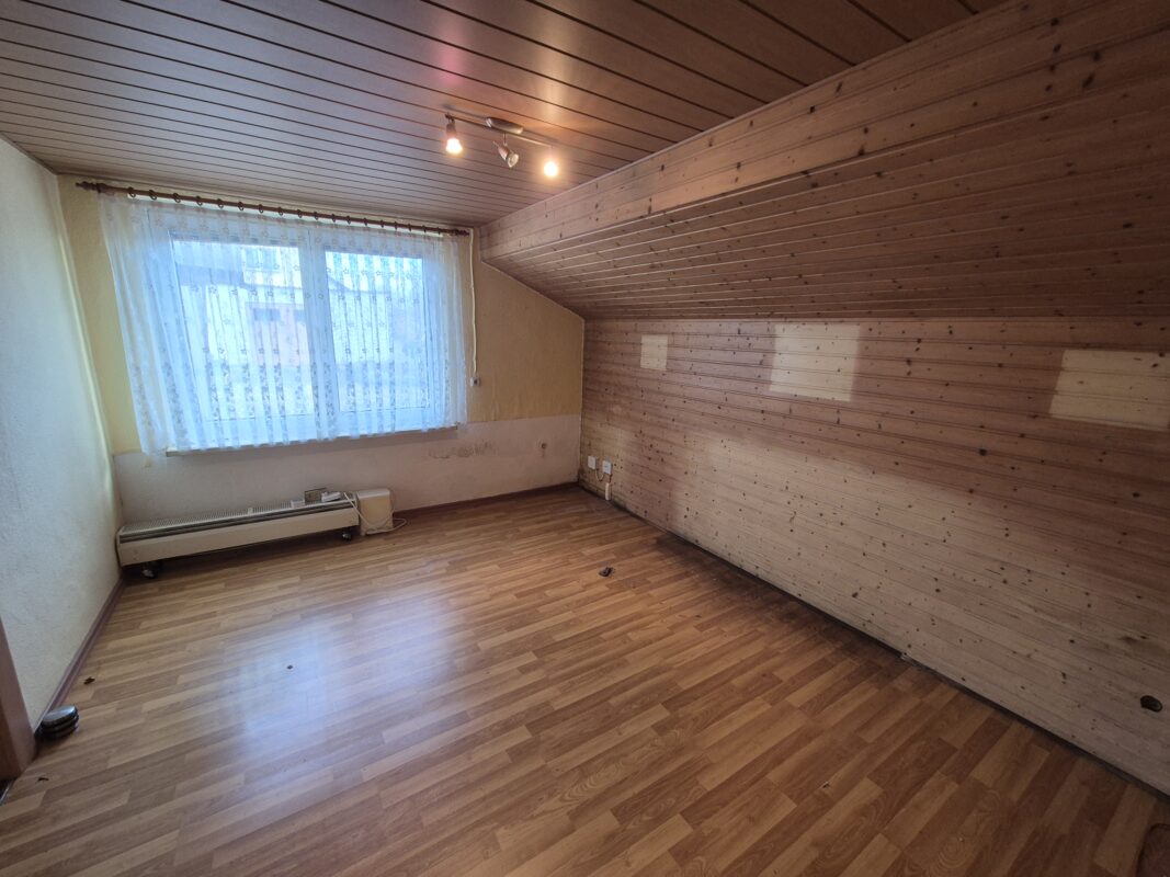 Im Obergeschoss befinden sich das Schlafzimmer, zwei Kinderzimmer sowie ein Vollbad mit Dusche und Badewanne. Der Dachboden ist begehbar und bietet praktische zusätzliche Lagerfläche.