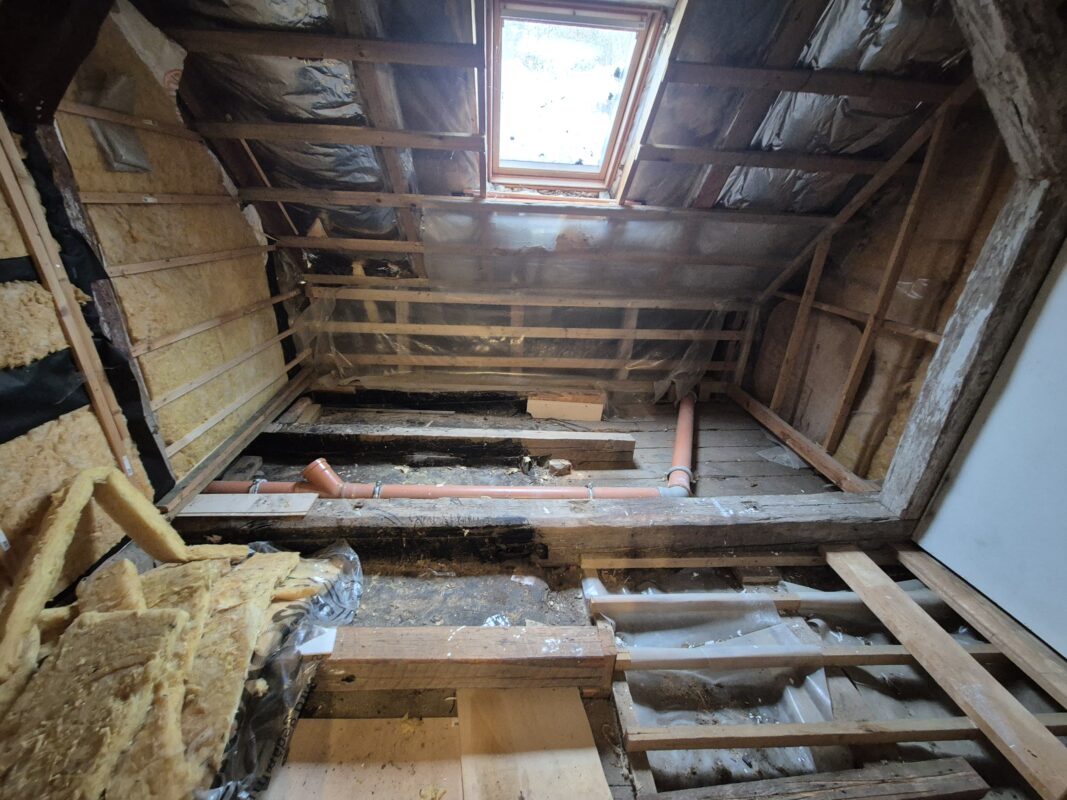 Das Dachgeschoss wird derzeit überwiegend als Abstellfläche genutzt, bietet jedoch aufgrund seiner Größe ein sehr gutes Ausbaupotenzial zur Schaffung zusätzlicher Wohn- oder Nutzfläche.