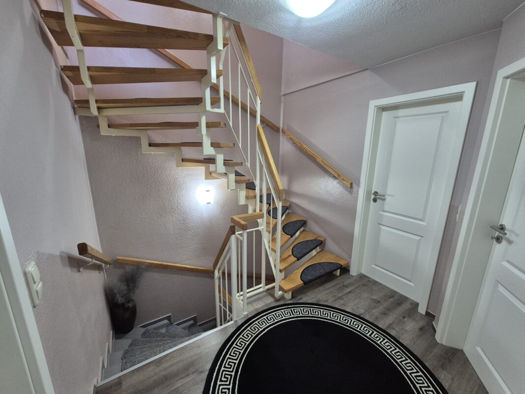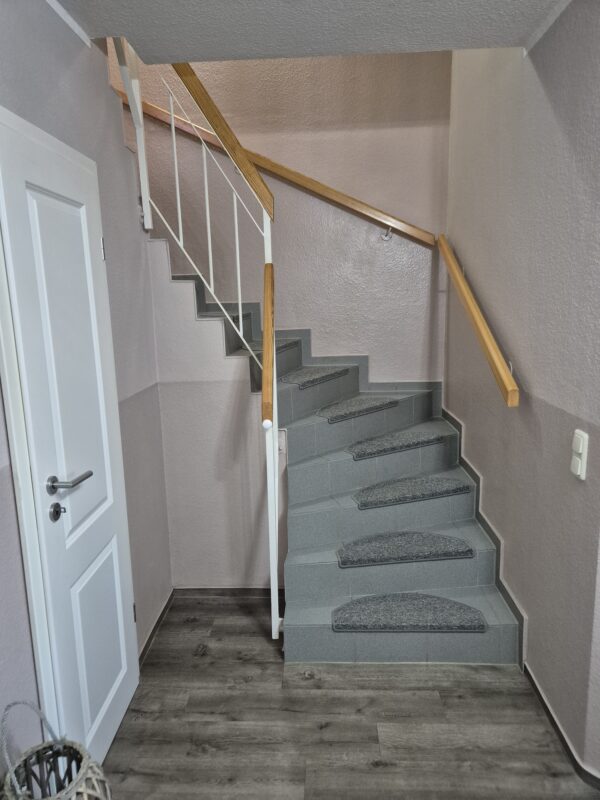 Über eine Echtholztreppe mit Rausfallschutz gelangen Sie in das erste Obergeschoss.